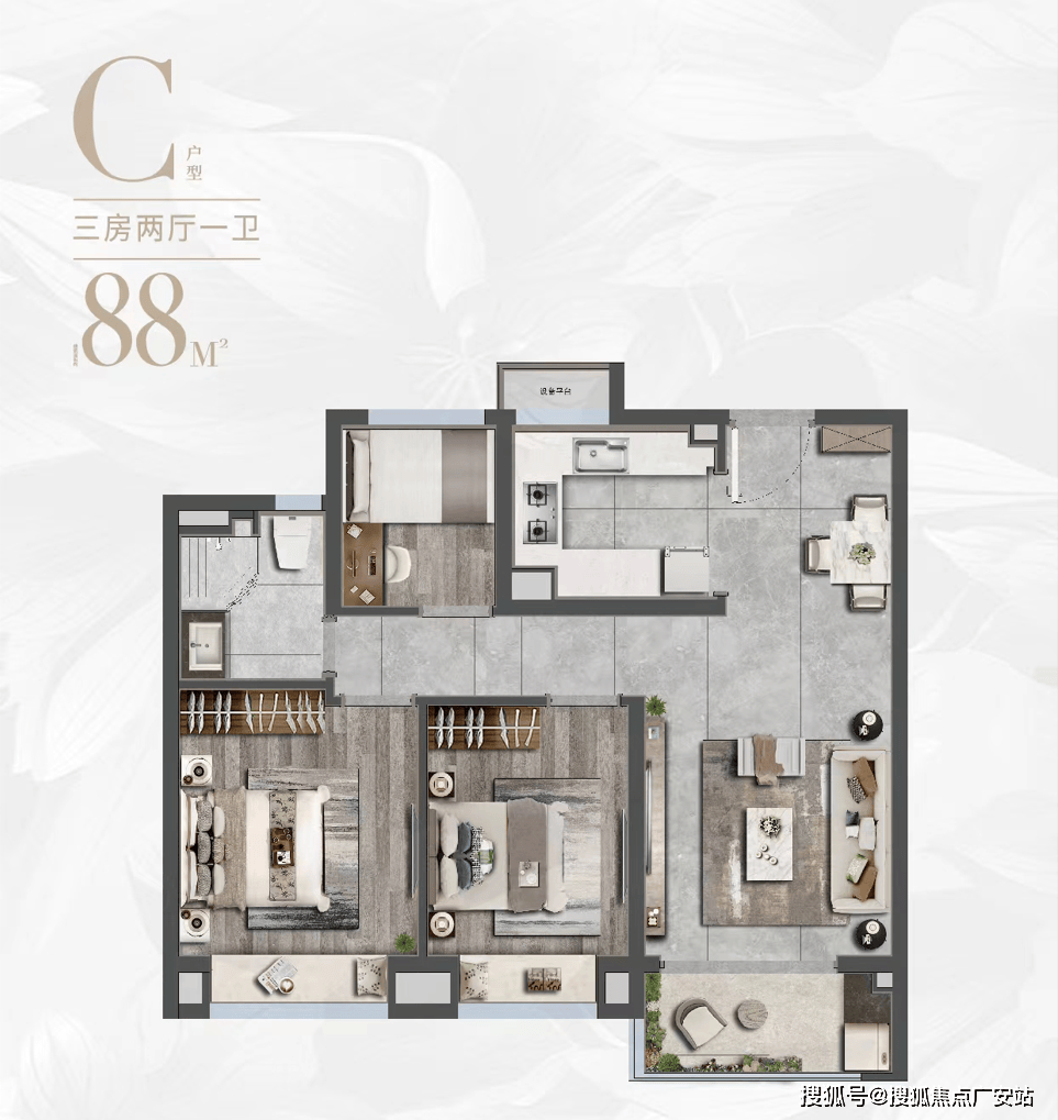 厅一体化+式厨房+大标准不雅景阳台